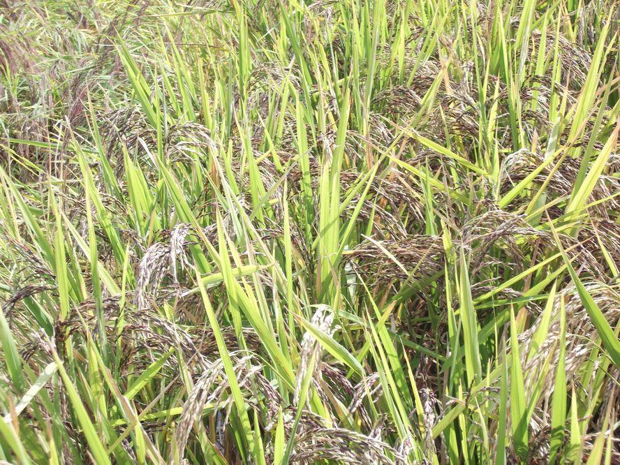 ということで24年度大豆畑の真ん中にイネの姿が・・。かっこいい。