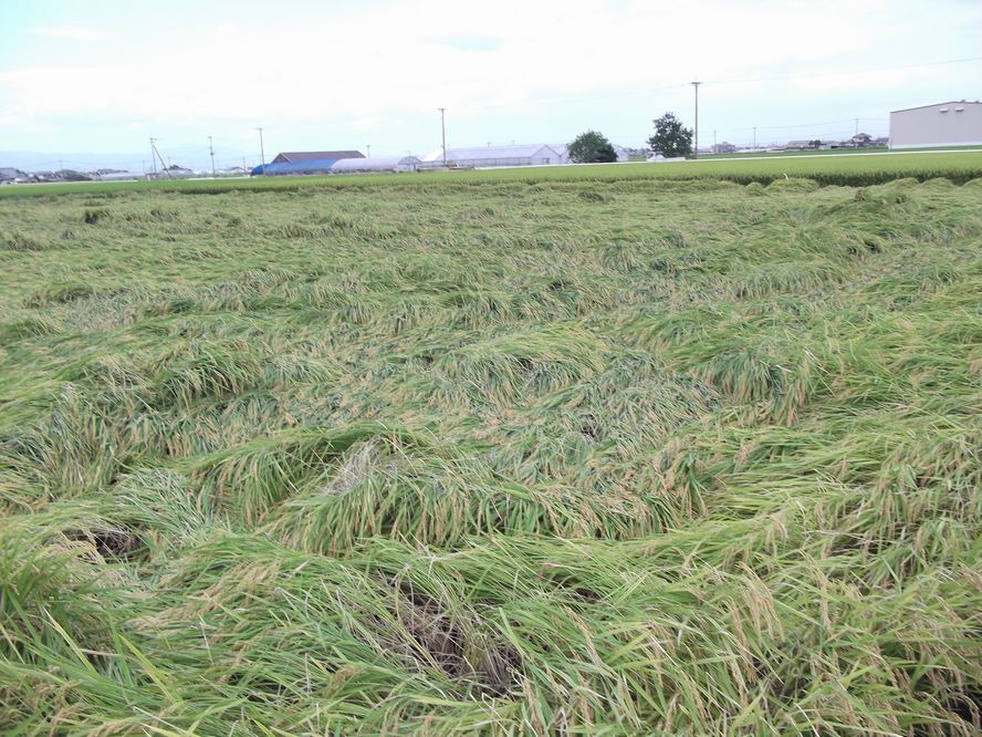10日前の雨・風でよその夢しずくは、見事に倒れた。でもうちのは、道路まで穂首が出ようとも倒れない。