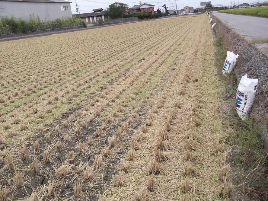 刈取後の田んぼには、早速石灰を入れました。PHを6.5~7.0にもっていくように・・。