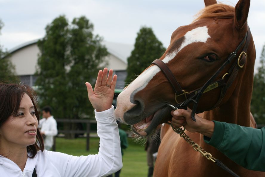 応援して下さい。写真はノーザンFでの1歳時のそのレックスにじゃれる嫁・・(笑)