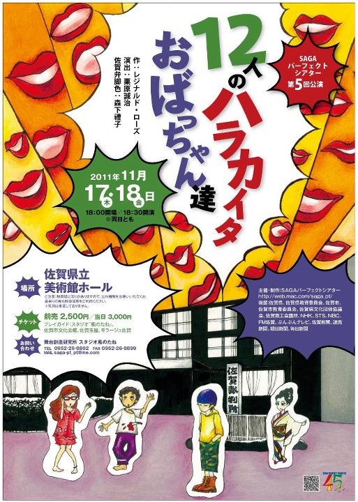 いよいよ、本日無事5回目の公演を迎えるSAGAパーフェクトシアター。昨夜のゲネで感じた事、ゲネとは、役者の練習に加え、舞台監督さんを交え音・照明をいれる最終的な総括リハです。佐賀弁に脚色された有名な脚本。法廷と言う箱舞台に飛び交う台詞。飛び交うのは台詞だけじゃなく、今回売りの個性的な配役12名。ストリーを作り上げる8号に、それに茶々をいれる3号ら。白熱する演技に支える役者。劇団の売りは「人生経験」という代表のコメントをNHKの取材で拝見したことがある。この芝居に対して、主役はたぶんいないっていうか12名すべての役者が主役なんだなぁ~。台詞を持つ人。受ける人。いろんな人の中で「我々の生活は」成り立っている。自分の意見を主張したがる人。論理を通す人。受け上手に。ほめ上手。・・。役者の個性が際立ったこの芝居は生活を基軸とした社会そのものだ。