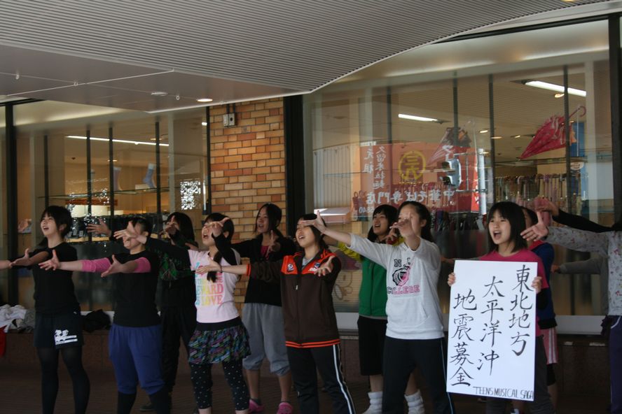 3/13、12時と17時に、地震の募金を歌と踊りを交えて行われました。
