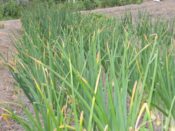 どちらが坪家???左です。右に比べ栄養足りませんね、緑が薄く、赤いとこも見えます。玉ねぎは、土の中の栄養分を沢山必要とします。当然、土の中では足りません。だから人間は科学肥料に頼ります。ベテラン農家の玉ねぎは数回化学肥料を与えております。うちは、初めて玉ねぎを作りました。だから1回だけ化学肥料の世話になりました。でも、4回にわけ、EM堆肥を与えました。