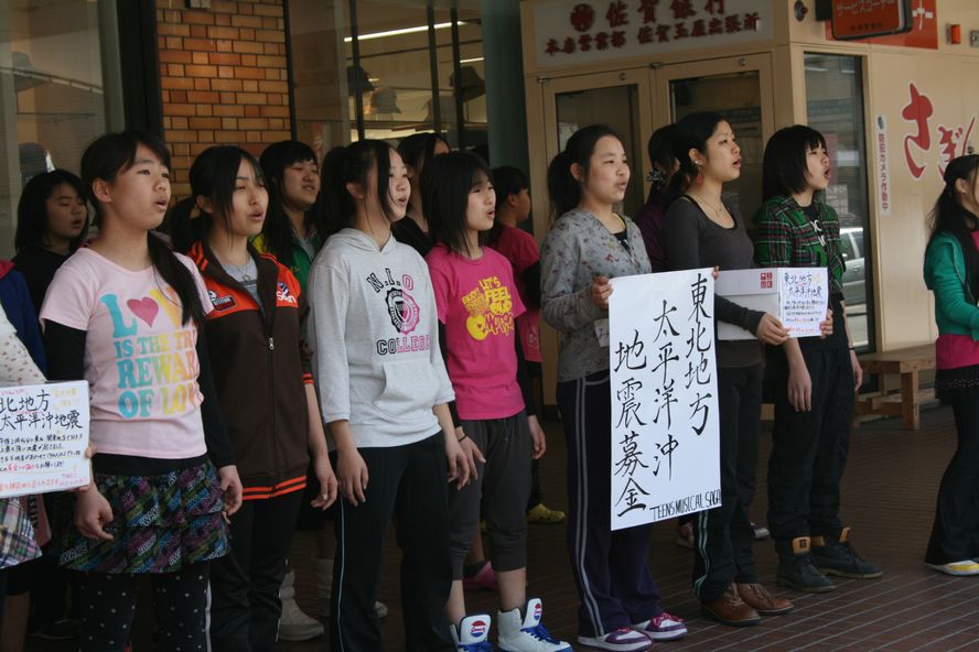 3/13、12時と17時に、地震の募金を歌と踊りを交えて行われました。